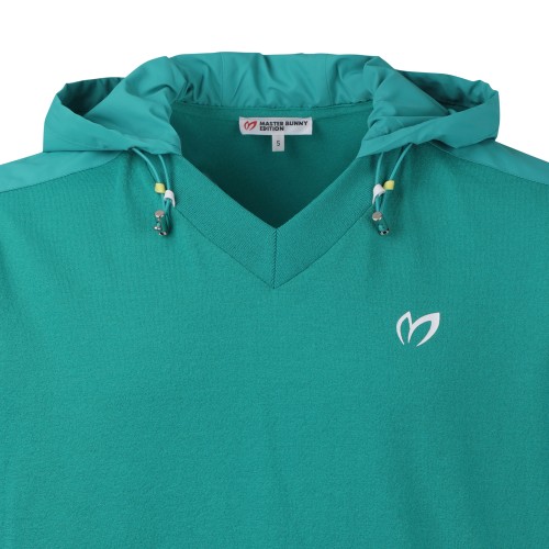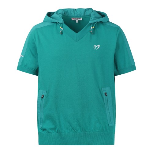 남성 후드 블록 백 엠블럼 반팔 니트 탑
