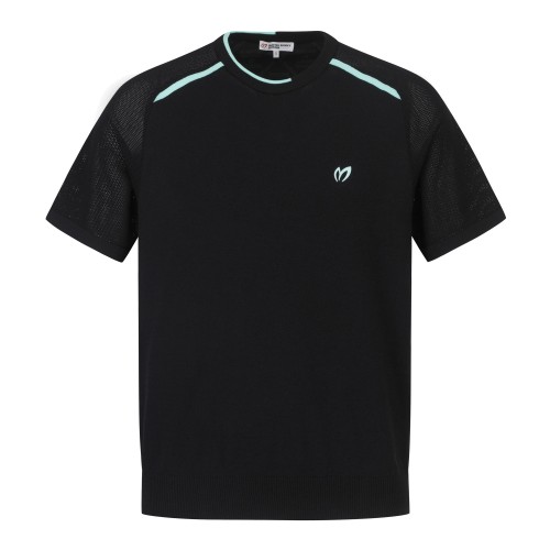 남성 우븐 블록 컬러 라인 반팔 니트