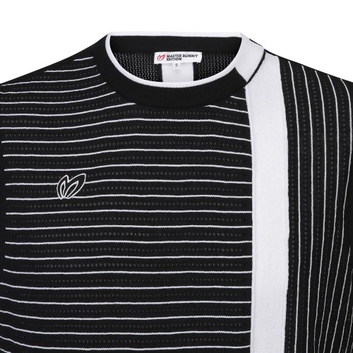 남성 펀칭 믹스 칼라 반팔 니트