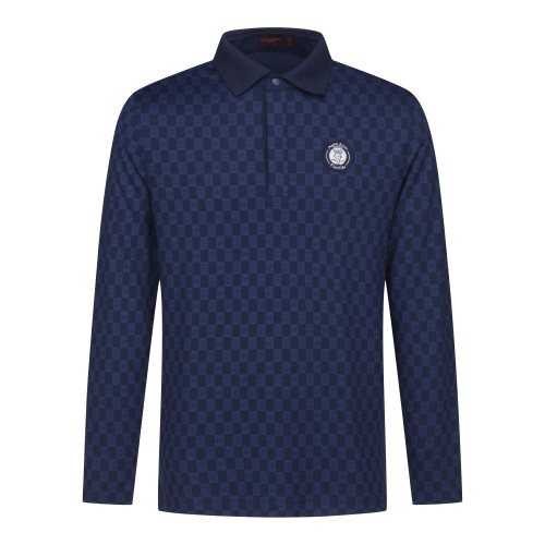 남성 로고 체커보드 칼라 긴팔 티셔츠