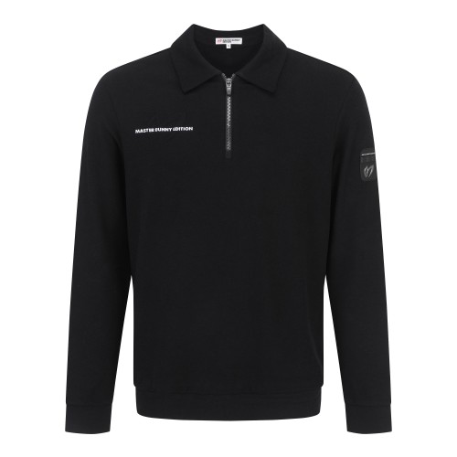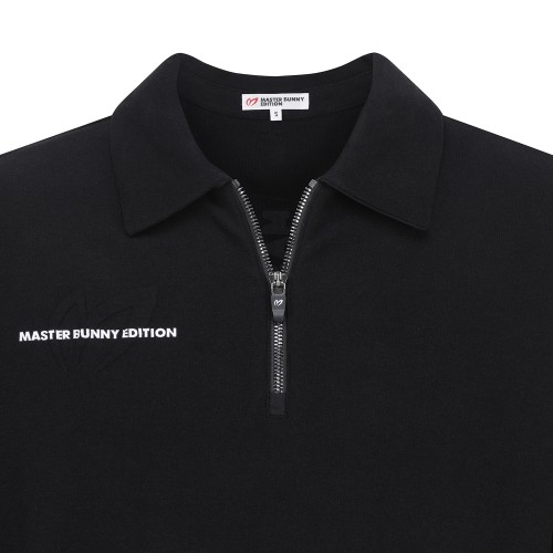 남성 백 로고 솔리드 하프 집업 칼라 티셔츠