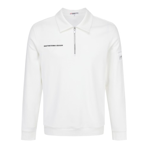 남성 백 로고 솔리드 하프 집업 칼라 티셔츠