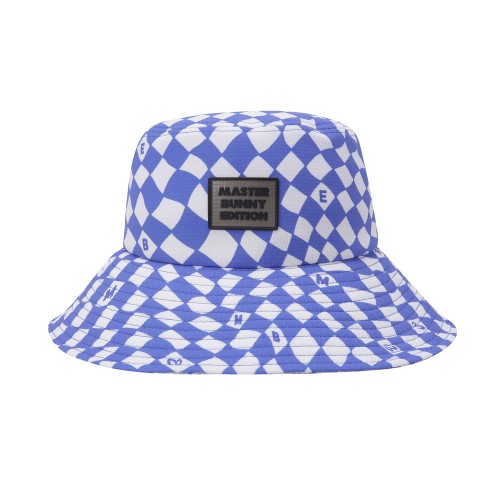 남성 로고탭 변형 체크 버킷햇
