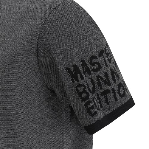 남성 로고 슬리브 배색 반팔 니트
