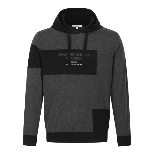 남성 컬러 블록 로고 후드 니트