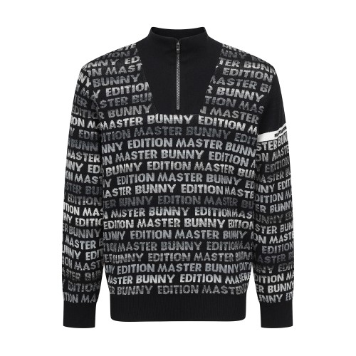 남성 로고 자카드 패턴 하프집업 긴팔 니트
