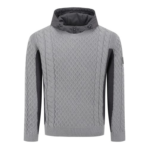 남성 배색 라인 케이블 니트 & 후드 이너 탑