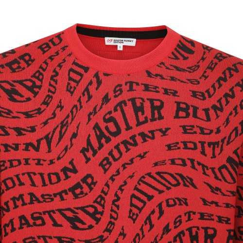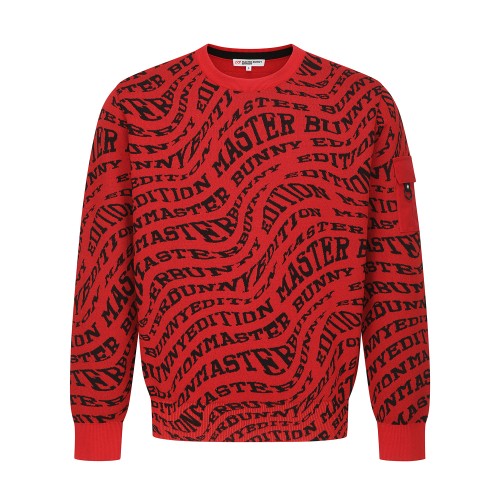 남성 웨이브 레터링 자카드 라운드넥 니트