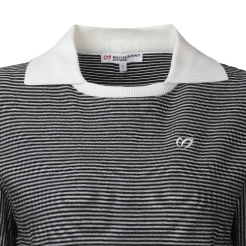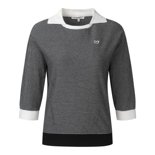 여성 스트라이프 배색 칼라 니트