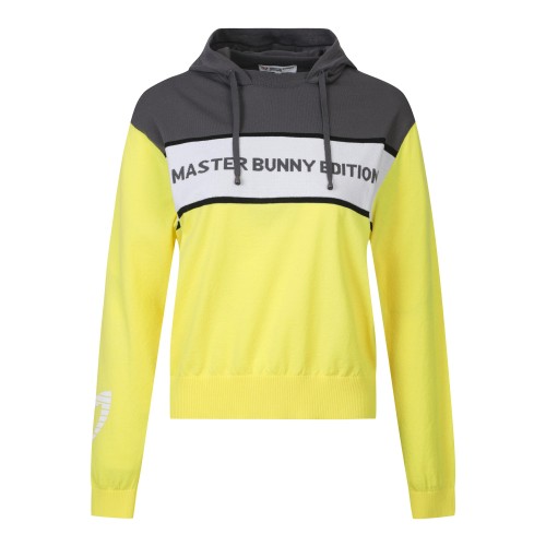 여성 컬러 믹스 로고 후드 니트 탑