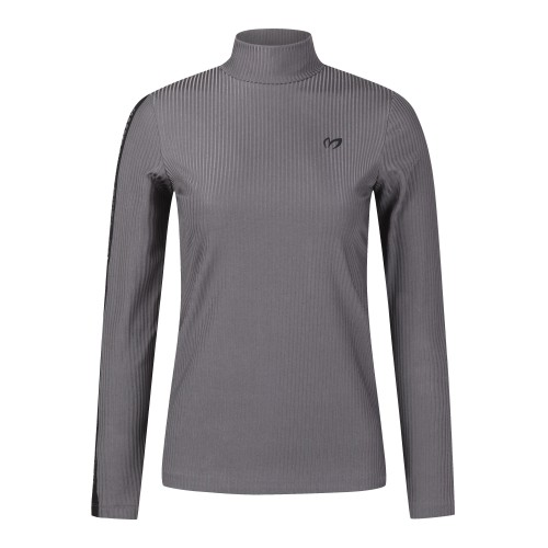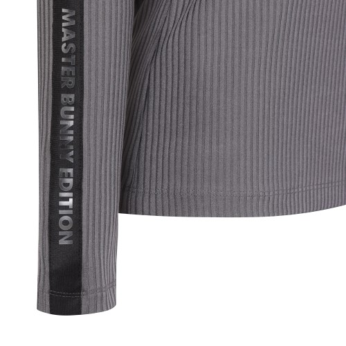 여성 모크넥 루버 로고 골지 티셔츠