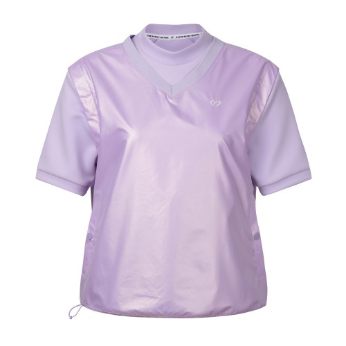 여성 백 엠보 로고 레이어 반팔 티셔츠