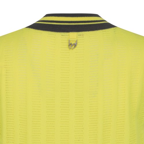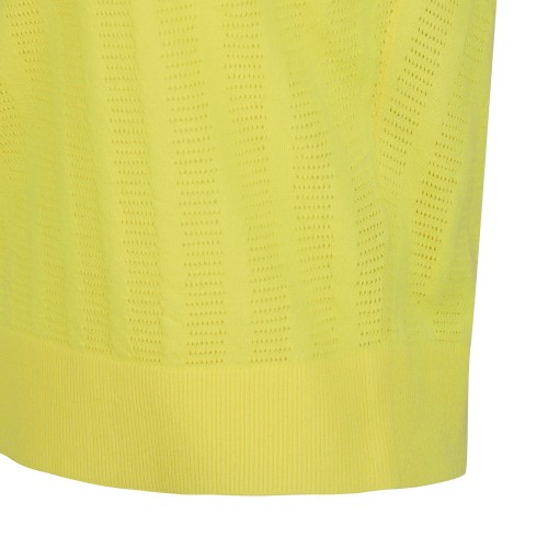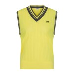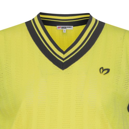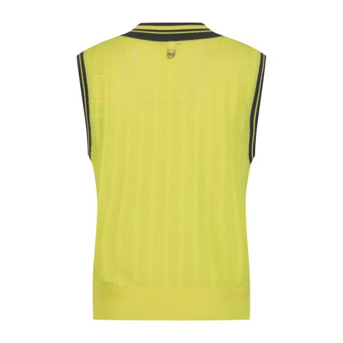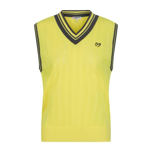 여성 로고 패치 오픈 칼라넥 슬리브리스 니트