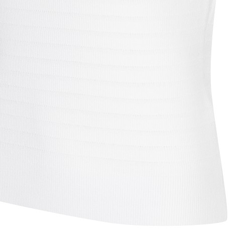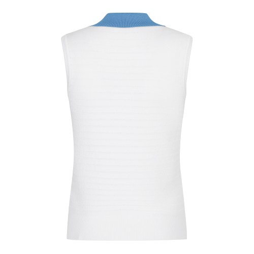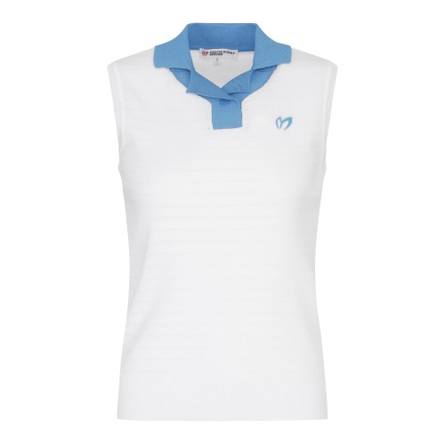 여성 로고 패치 오픈 칼라넥 슬리브리스 니트
