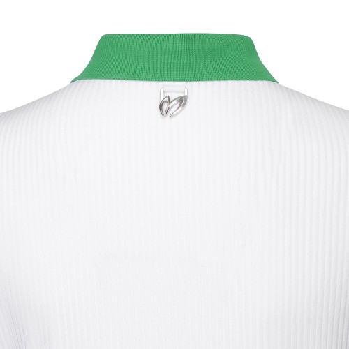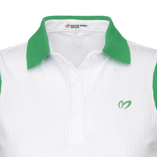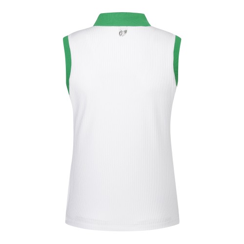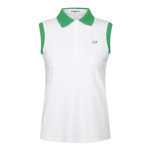 여성 배색 칼라 골조직 슬리브리스 티셔츠