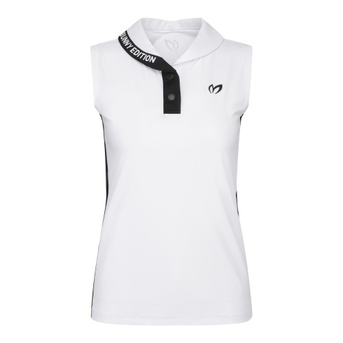 여성 모크넥 라인 배색 슬리브리스 티셔츠