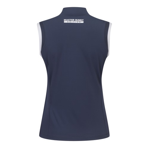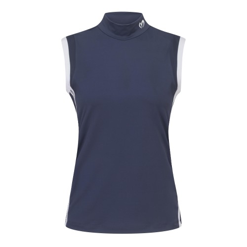 여성 모크넥 라인 배색 슬리브리스 티셔츠