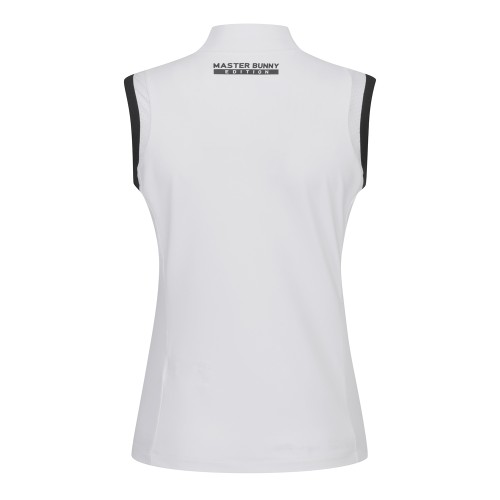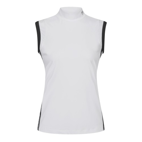 여성 모크넥 라인 배색 슬리브리스 티셔츠