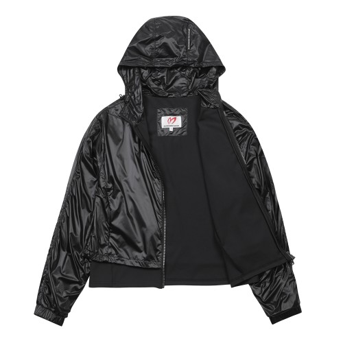여성 레이어드 유광 후드 집업