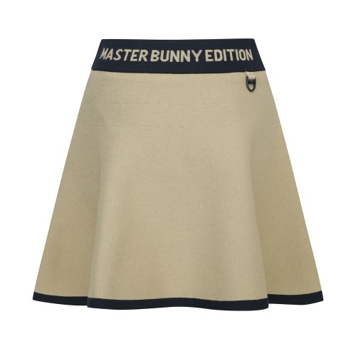 여성 로고 배색 플레어 니트 스커트