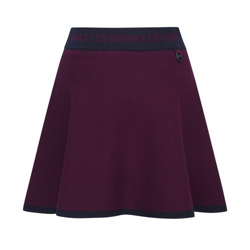 여성 로고 배색 플레어 니트 스커트