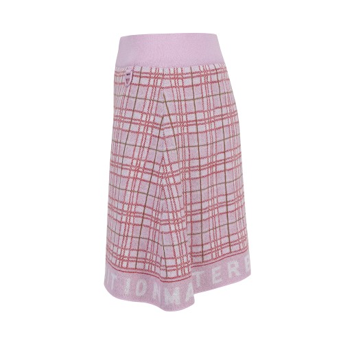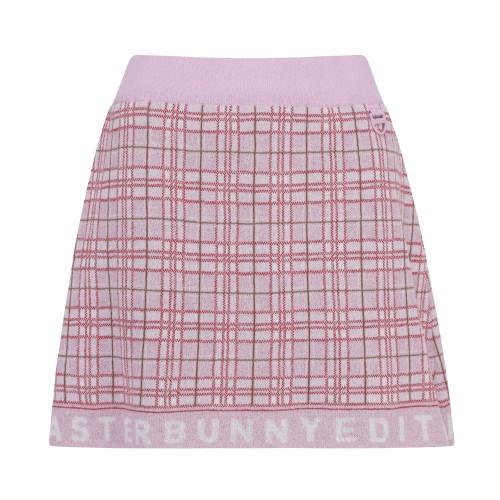 여성 타탄 체크 로고 니트 스커트