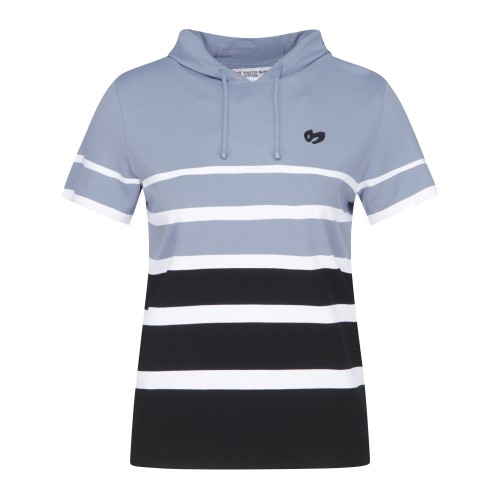 여성 컬러 블록 미니 후드 반팔 스웨터