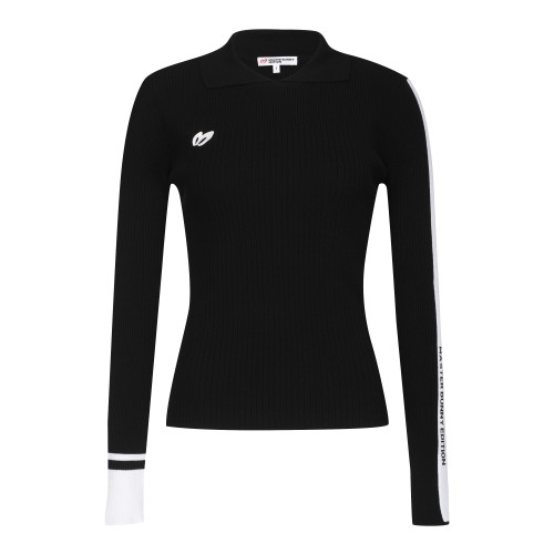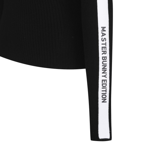 여성 백 로고 라인 모크넥 스웨터