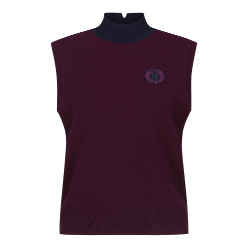 여성 컬러 모크넥 백 로고 니트 베스트