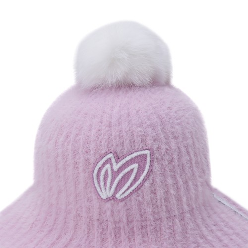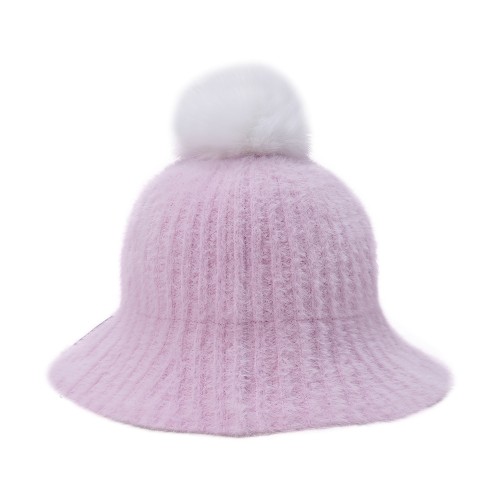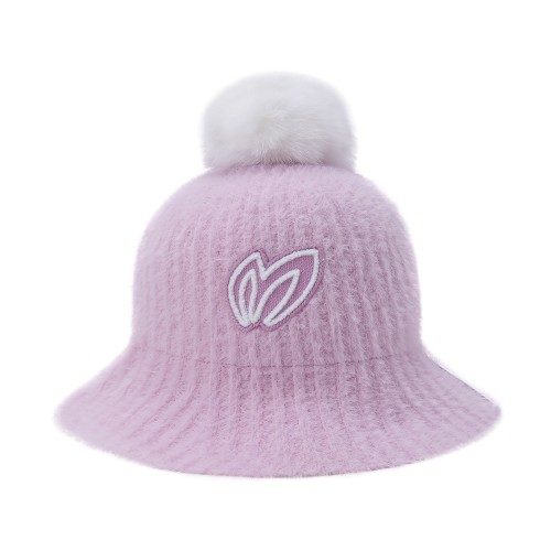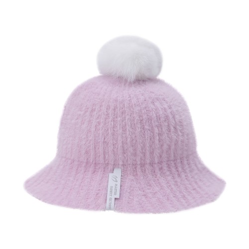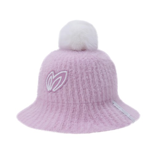 여성 퍼 방울 로고 니트 버킷햇