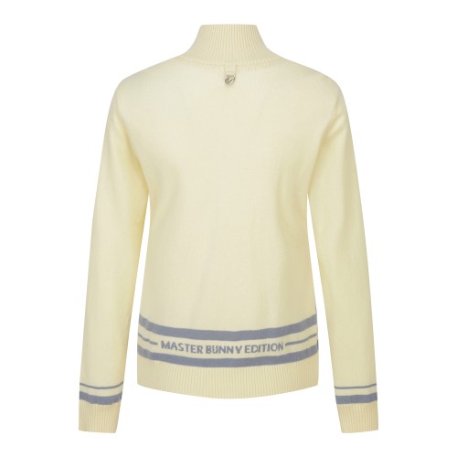 여성 레터링 자카드 모크넥 방풍 스웨터