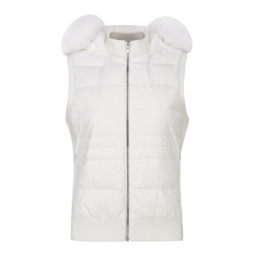 여성 구스 다운 니트 믹스 폭스퍼 방풍 베스트
