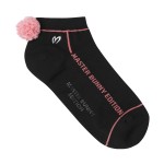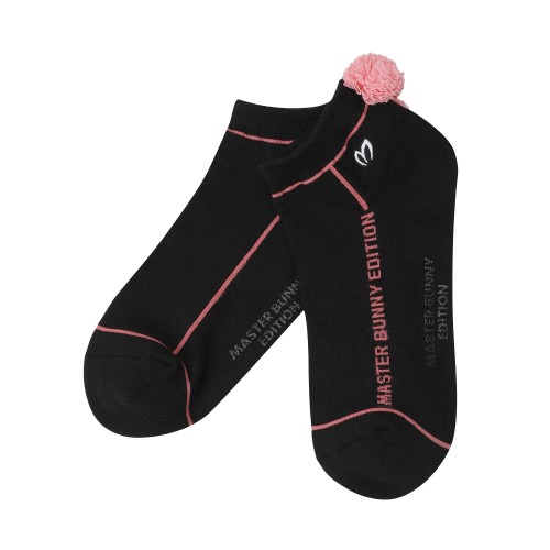 여성 폼폼 배색 로고 단목 양말