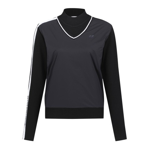 [ONLY BUCKET] 여성 우븐 레이어 로고 긴팔 니트