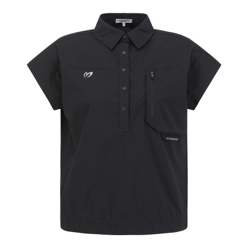 여성 타공 믹스 포켓 칼라 캡 슬리브 점퍼