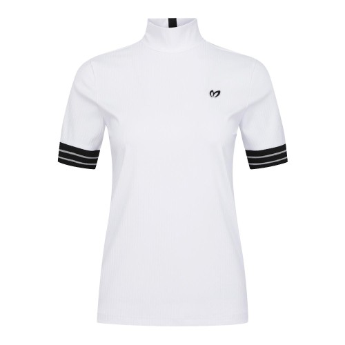 [윤이나프로 착용] 여성 골지 슬리브 블록 하프넥 반팔 티셔츠
