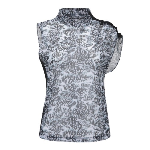 여성 로고 패턴 프린팅 시어 슬리브리스 탑