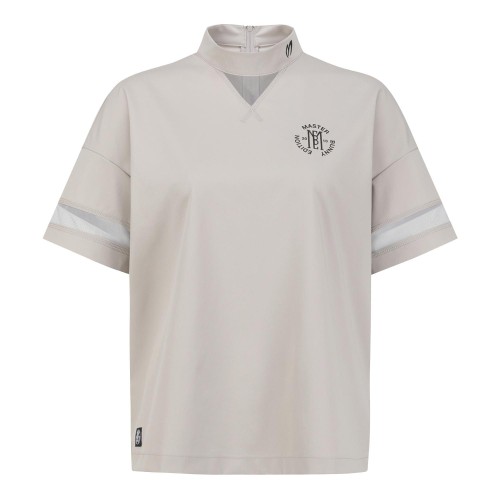 여성 튤 블록 로고 모크넥 반팔 티셔츠