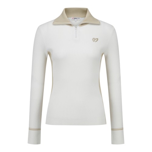 여성 컬러 믹스 슬림 하프 집업 니트