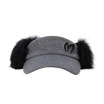 여성 퍼 장식 심볼 코듀로이 볼캡