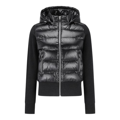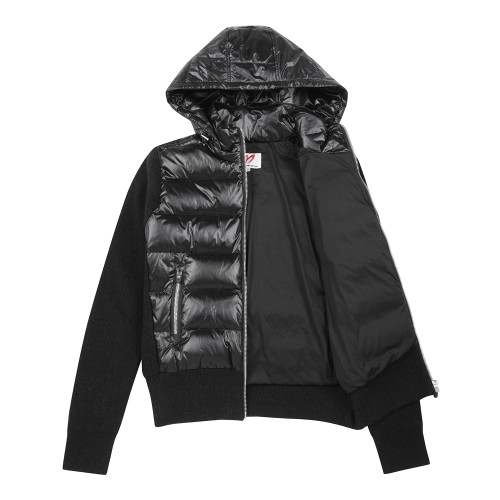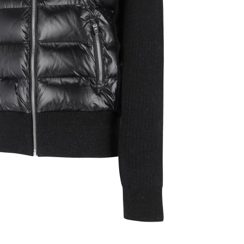 여성 니트 블록 후드 구스 다운 하이브리드 가디건