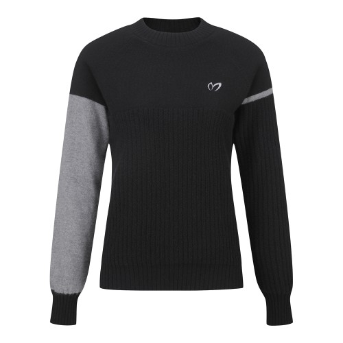 여성 크로셰 블록 라운드넥 니트