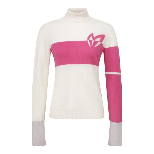 여성 컬러 믹스 하이넥 긴팔 니트