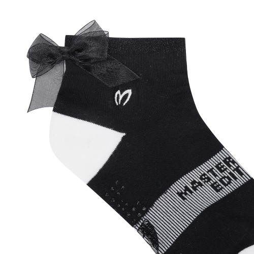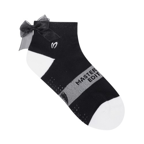 여성 논슬립 메탈사 배색 리본 단목 양말