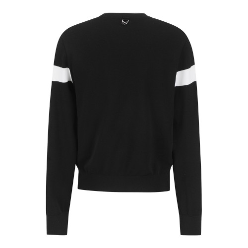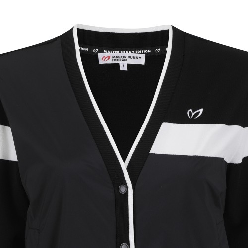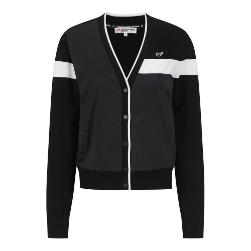 여성 로고 라인 백 우븐 집업 가디건
