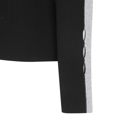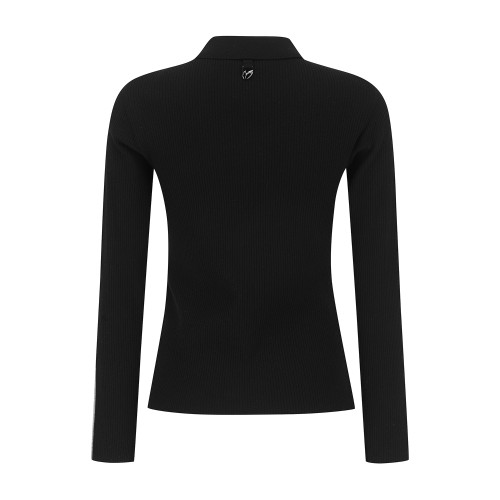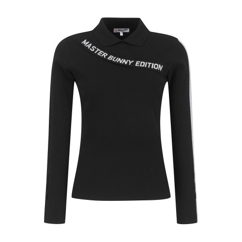 여성 사선 로고 패널 골조직 칼라 니트