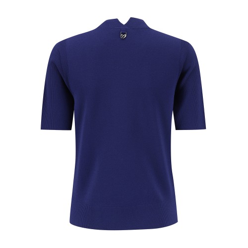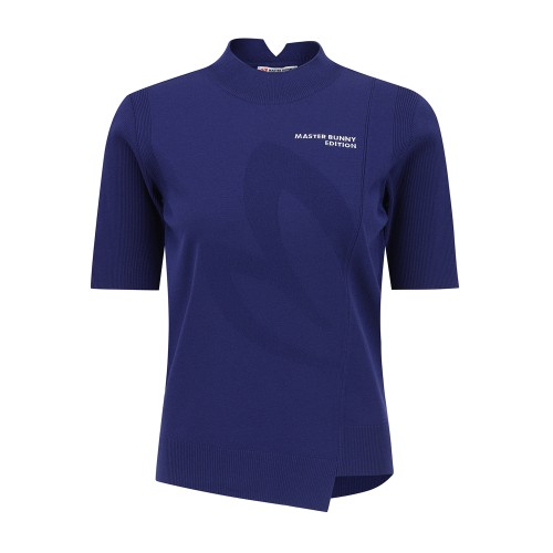 여성 사선 로고 패널 골조직 칼라 니트