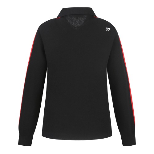 여성 컬러 라인 배색 로고 오픈 칼라 니트