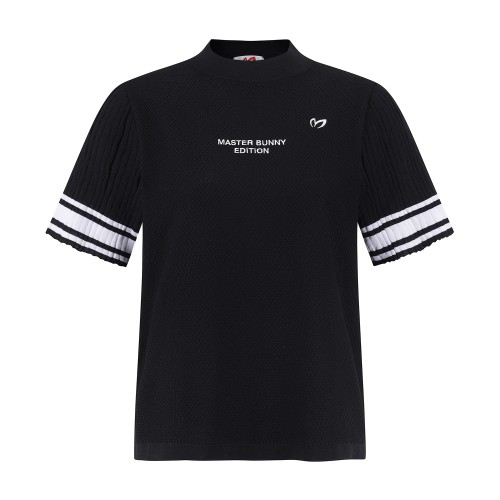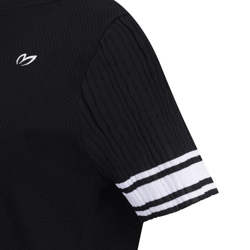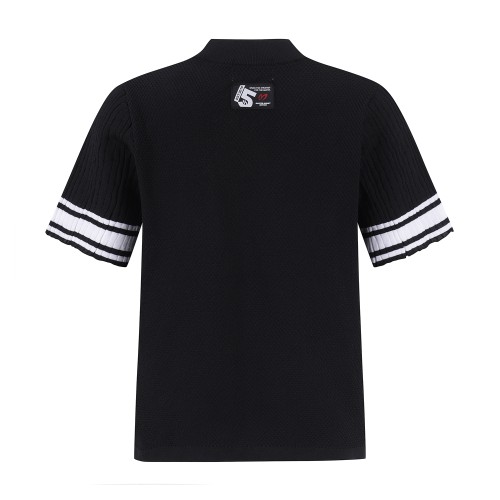 여성 배색 라인 로고 반팔 니트