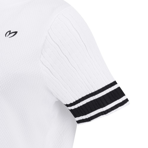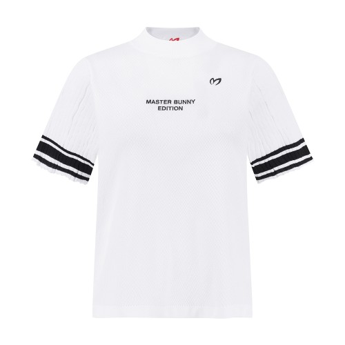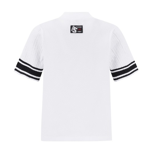 여성 배색 라인 로고 반팔 니트